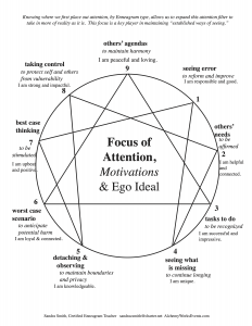 Sandra Smith (https://alchemyworksevents.com/sandra-c-smith-enneagram-consultant/), is a Certified Narrative Tradition teacher, an Enneagram Consultant, and an IEA (International Enneagram Association) Accredited Professional and Spiritual Companion. Sandra began teaching this system in 2001 and founded AlchemyWorks in 2008, which began her full-time Enneagram Teaching and Consulting.